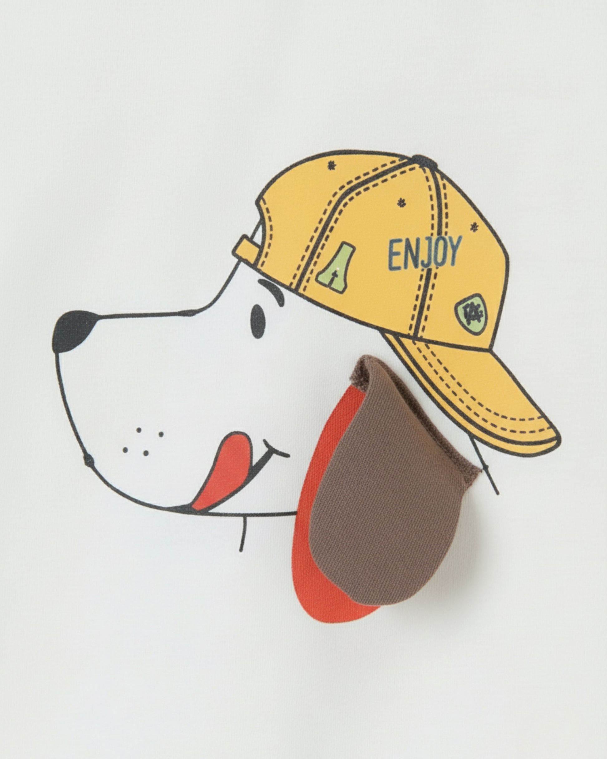 Puppy Printed Premium Cotton Half Sleeves White T-Shirt for Boys